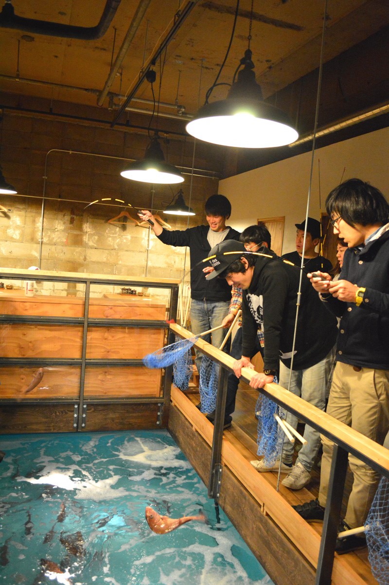 It is so -called Speed Fishing Competition. The winner who could catch the fish first can get the whole fish for free. Besides that, we are helping the entertainment for a group party with something like Bingo Game. Furthermore, our staff is trying to eavesdrop on a conversation of the customers in toasting and provide them with surprise service in accordance with their memorial event. It’s free of charge!!! (LOL).
