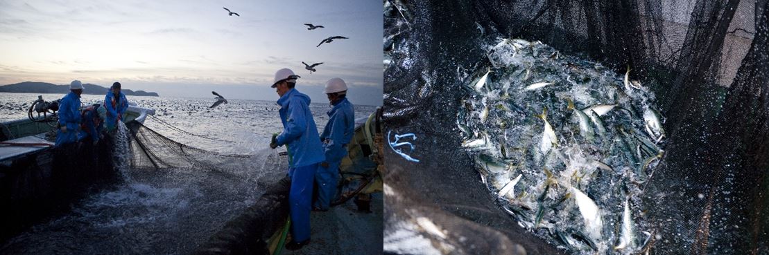 It seems to be a matter of course, but fishermen catch the fish in the ocean. The fish hung in the net are moved into the water tank in the fishing boat while it is still alive. Then, as soon as returning to the fishing port, the fish are sorted out based on its species and size.