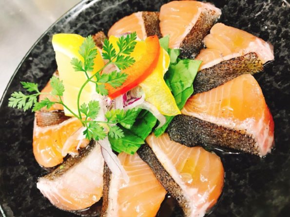 こちらは試作品のひとつ、皮目をあぶったカルパッチョ。