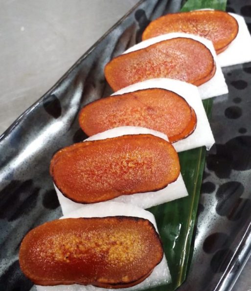 天神店の料理長・しょうたさんは、高級珍味のからすみを自ら仕込んでいます。
