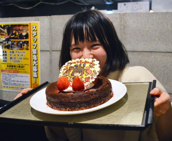 プレートに描かれた原地さん、本人にそっくりでとても嬉しそうです。
