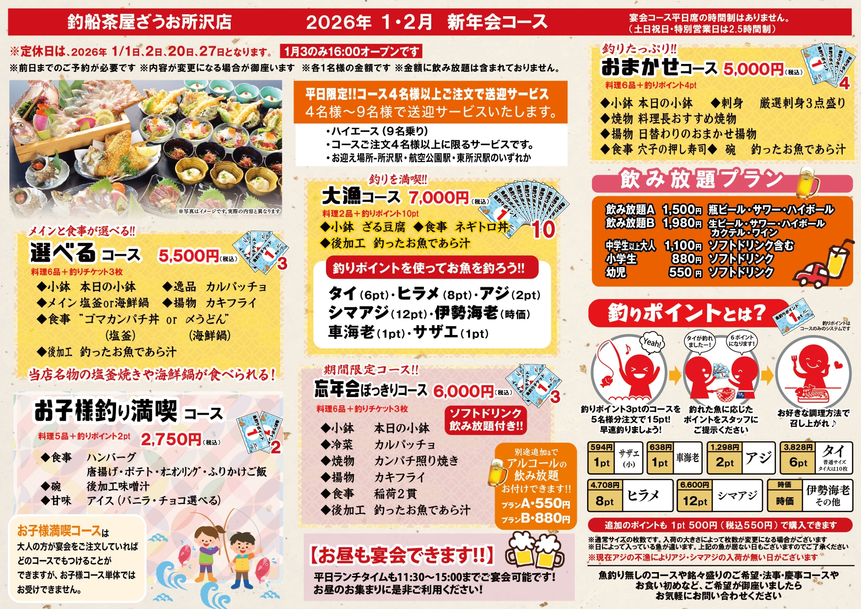 釣船茶屋ざうおでは各店ご宴会コースプランを多数ご用意しております。(各コース2名様分~お受け出来ます)