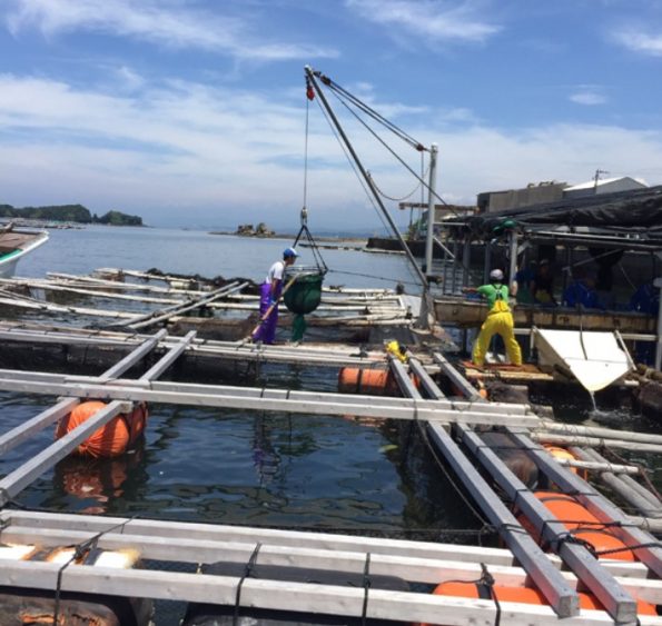 第2弾は、前回見学した岐阜県の淡水養殖場から、静岡県沼津にある海上養殖筏に移動させます。