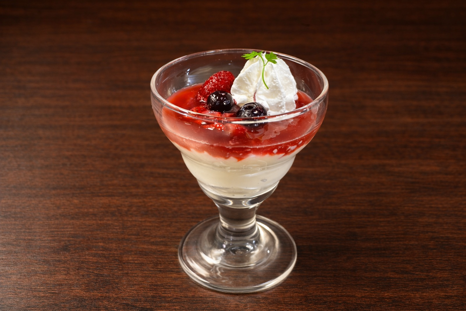 なめらかな口当たりと、季節ごとのソースが楽しめるデザートです🍓