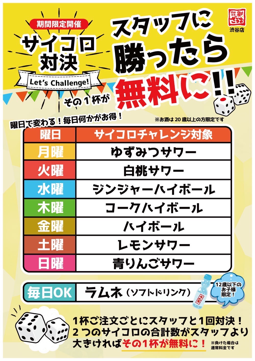 🎲 スタッフと真剣勝負『サイコロ対決』開催中! 🎲